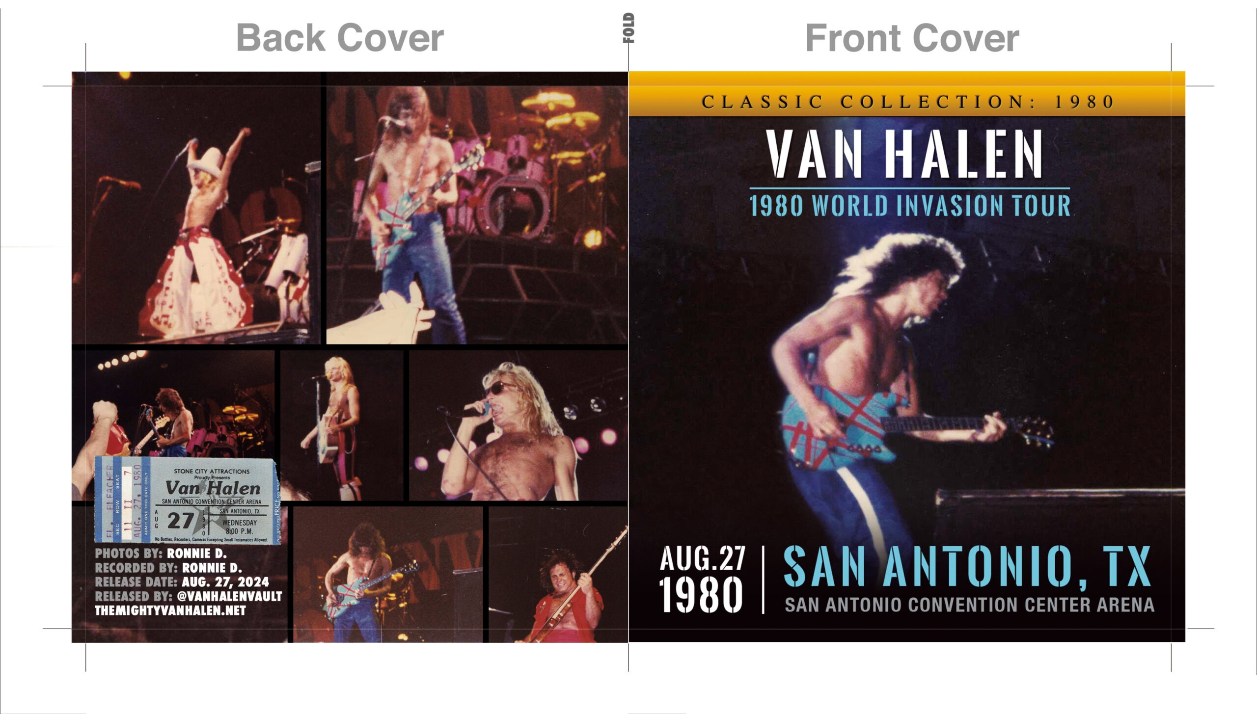Brand new Aug. 2024 release from 1st Gen master cassette! Van Halen live in San Antonio, TX on the 1980 World Invasion Tour. Pretty decent quality bootleg (B). Probably better than most from the 1980 tour which seems to have very few good quality recordings. Never shared before. The original taper transferred from his 1st Gen master cassette a few years ago. Released for the first time Aug. 27, 2024.